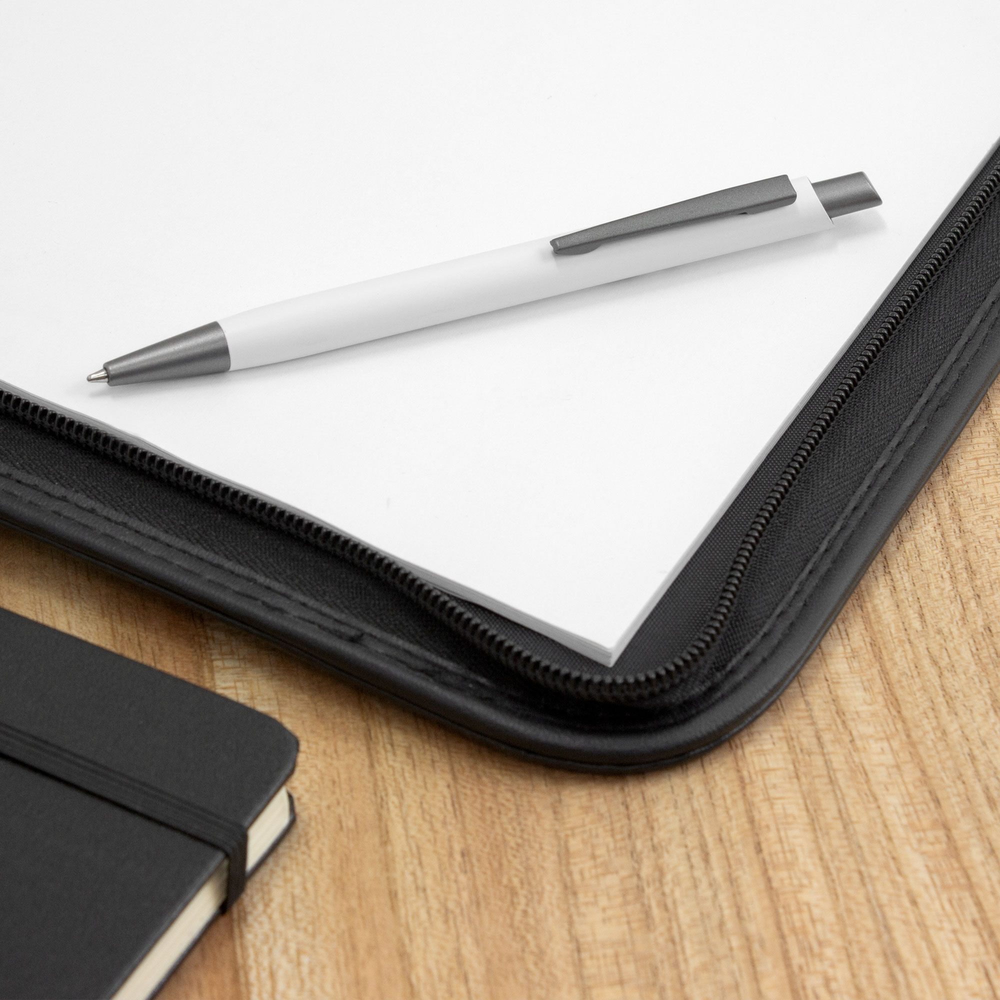 Aluminio, ABS, Acero. Boligrafo retráctil. Cuerpo revestido en laca de diferentes colores. Acabado mate. Pulsador, clip y puntera de color gris gun metal. Tinta azul. Amplia área de impresión.
