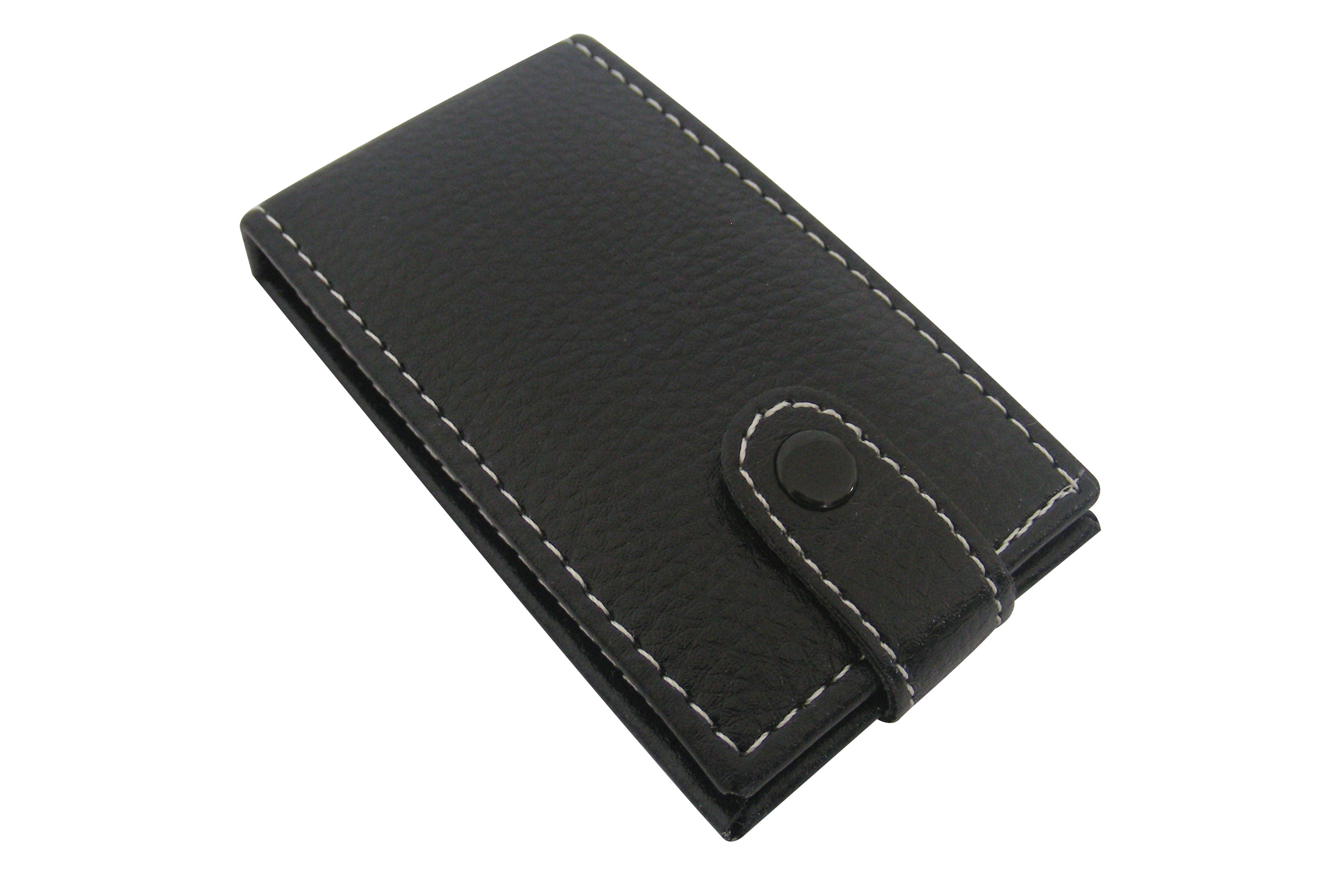 11 x 6,3 x 1,8 cm. Símil cuero. Set de tijera, alicate, lima y pinzas. En estuche de cuerina negra con botón.