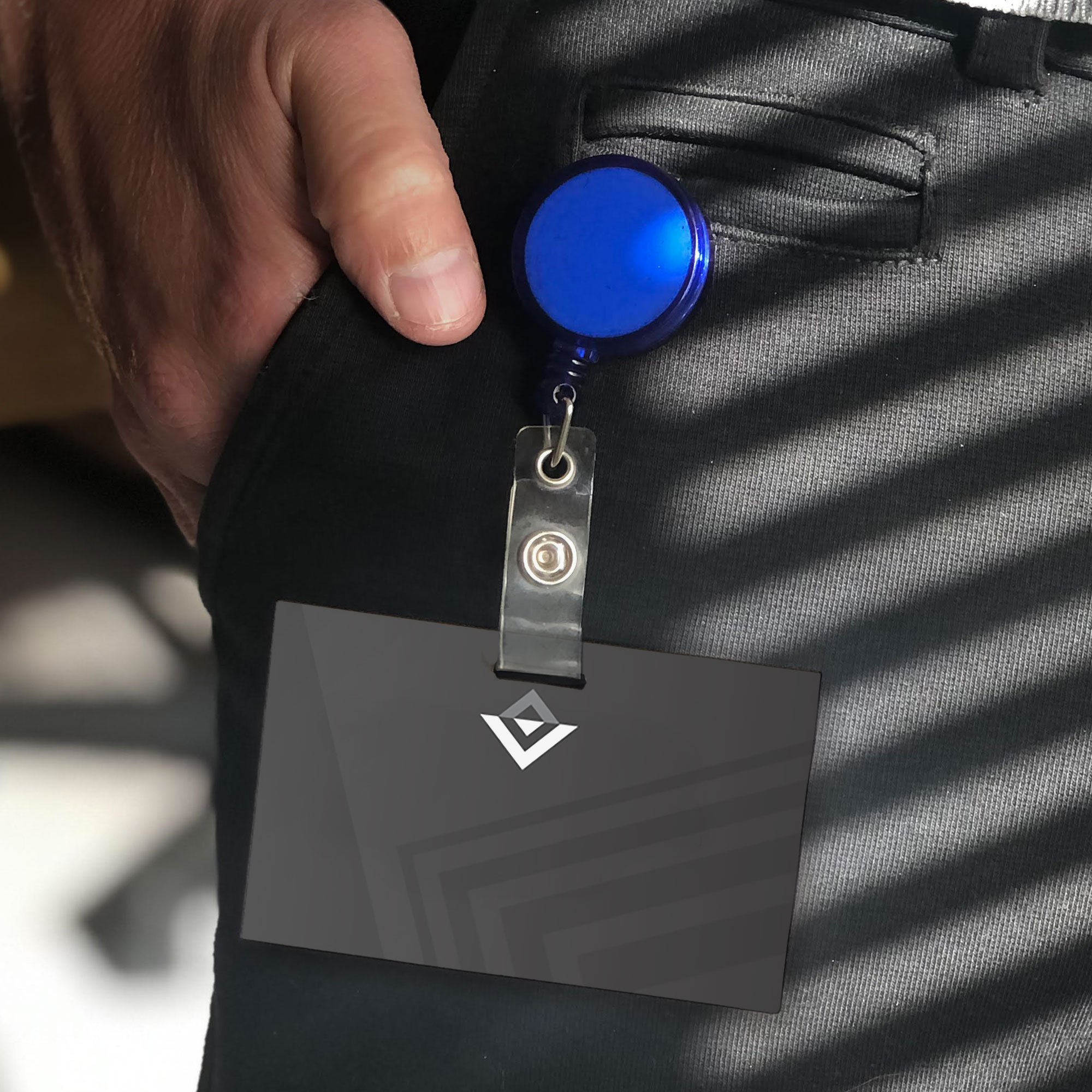 Ø 3 cm. Plástico y metal. Porta credencial retráctil. Clip metálico