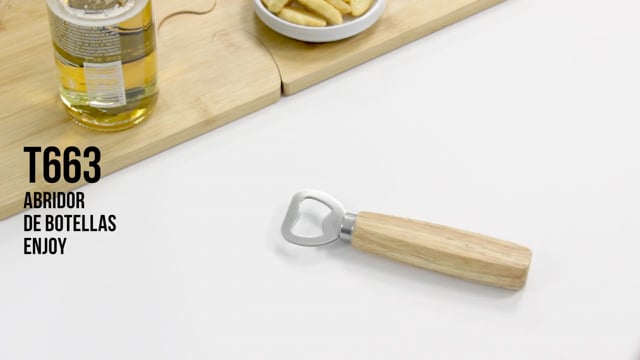 14,2 x 4 x 2 cm. Acero inoxidable 420 + Madera. Peso 45g. Destapador con mango de madera barnizada. Presentación en caja de regalo kraft.